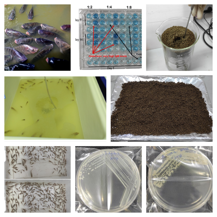 Aquaculture has made significant strides in providing a sustainable and efficient protein source. However, bacterial infections such as those caused by Streptococcus agalactiae and Aeromonas veronii remain a persistent challenge, affecting the health and productivity of Nile tilapia (Oreochromis niloticus) fingerlings. This study aimed to assess and compare the efficacy of two bivalent inactivated vaccines administered through different methods: oral vaccine followed by an oral booster (OR+OR) and immersion vaccine followed by an oral booster (IM+OR). Two cohorts of Nile tilapia fingerlings (1.1 +- 0.1 g) were randomly assigned to two tanks (150 fish/tank). In the OR+OR group, fish were immunized with an oral vaccine on days 1-7, followed by a daily oral booster on days 21-28. In contrast, the IM+OR group received an immersion vaccine on day 1, supplemented with a daily oral booster on days 21-28. Key measurements included IgM antibody levels against both Streptococcus agalactiae and Aeromonas veronii, as well as survival rates post-artificial infection. The findings shed light on the vaccine’s capacity to stimulate IgM responses and confer protective immunity against these bacterial pathogens. I found that for those formulations specifically, immersion was more effective in conferring protective efficacy for a few months and that oral vaccines were more appropriate to be given as a booster after primer vaccination. The outcomes from this study offer valuable insights into optimal vaccination strategies for enhancing aquatic animal health in aquaculture, specifically for Nile tilapia.
